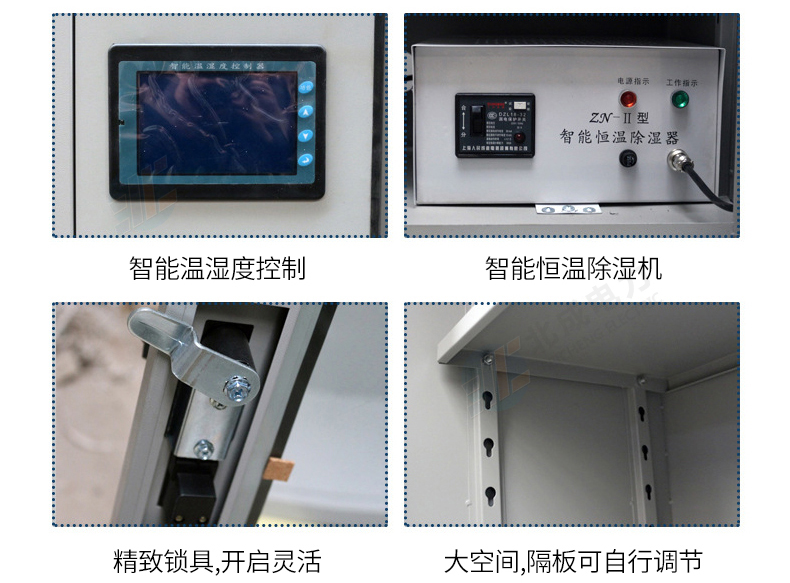 普通智能工具柜里面有一臺除濕機,柜體外面有一個數字顯示器顯示柜內溫濕度,可以通過顯示器上按鍵調節(jié)柜內溫濕度大小,結構簡單,操作方便,具體操作詳見智能工具柜說明書